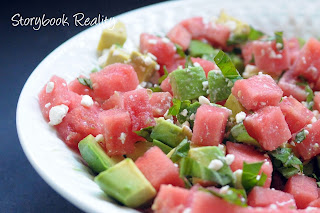 Watermelon Avocado Salad from Laura at Storybook Reality. My first reaction